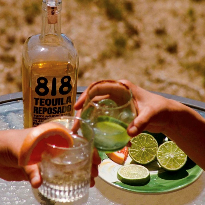 818 Reposado Tequila is crafted from 100% Blue Weber agave grown in Jalisco’s volcanic soils. The brand was founded by Kendall Jenner and works with expert distillers who uphold generations of tequila-making heritage. Every step, from harvesting mature agave to slow cooking in traditional ovens.