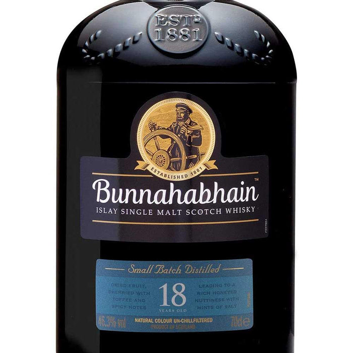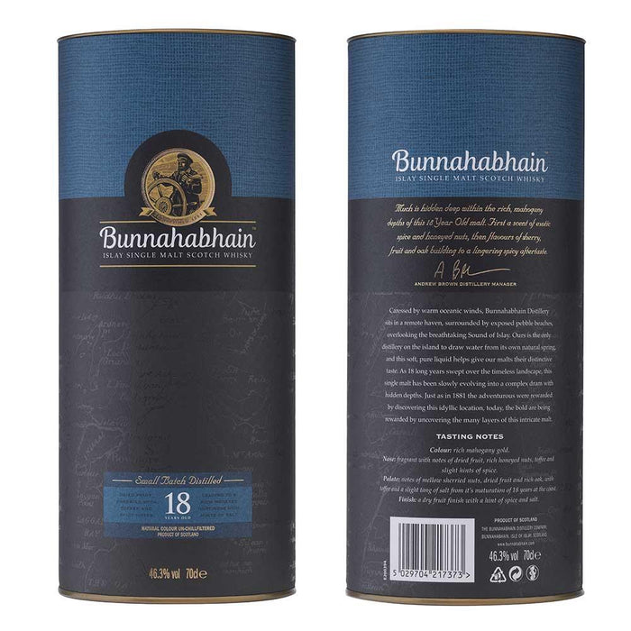 - Bunnahabhain 18 Year Old Single Malt Scotch Whisky reveals aromas of honeyed nuts, dried fruits, toffee, and subtle spice.